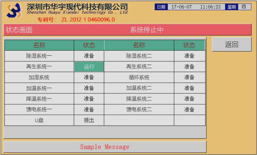 狀態(tài)畫面:當(dāng)前系統(tǒng)運行的狀態(tài)一覽表
