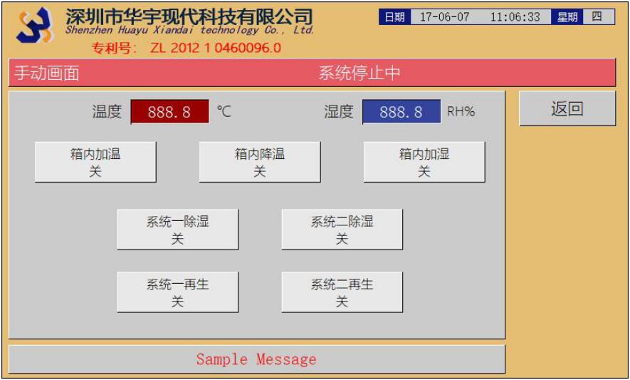 手動畫面:手動打開或關(guān)閉系統(tǒng)單項功能模塊。需要一級密碼進(jìn)入。